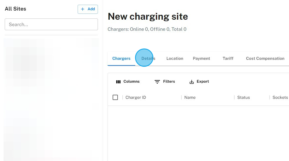 5. Now that your new Site is done, you can update the details and other settings or start adding chargers from the Site page.
