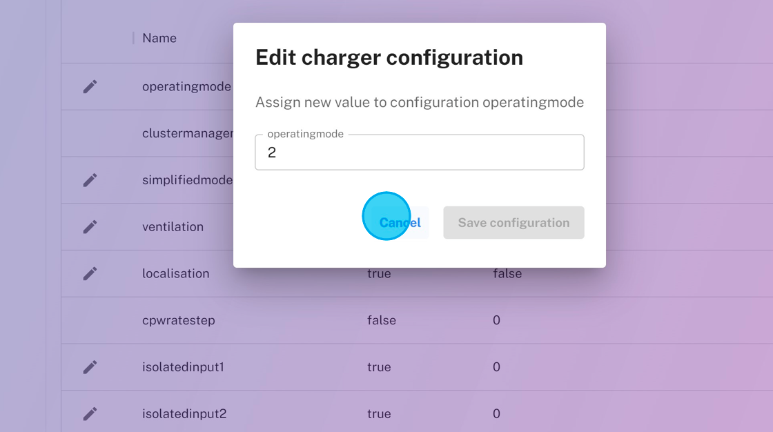 Updating OCPP configuration parameters through eMabler UI
